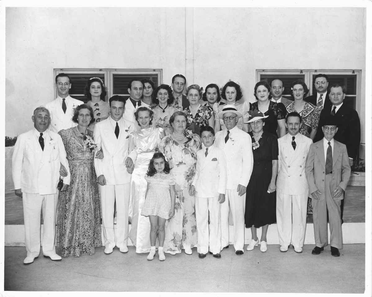 A family reunion for the Jacobs. Joseph Jacobs is on the far right, middle row, in a dark suit.