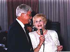 Ellis Katz being serenaded by Marjorie Katz at their Fiftieth anniversary party