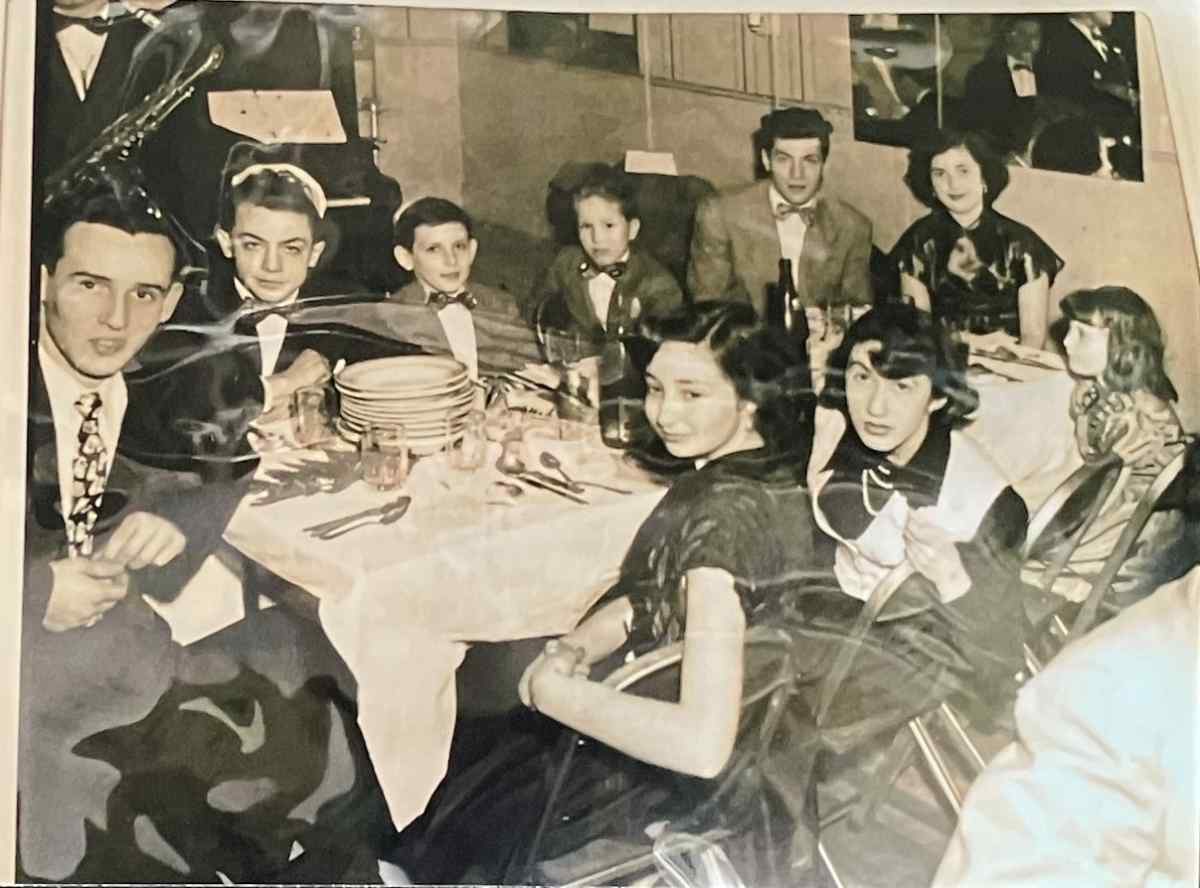 Starting at the little girl on the bottom right, which is Adrienne Shafran, on her right is Myra Shafran, and continuing on to Joe Shafran, Stuart Klipper, Sam Shafran, Nate Shafran, Larry Lachant, Janet Greene, and Gloria Stone.