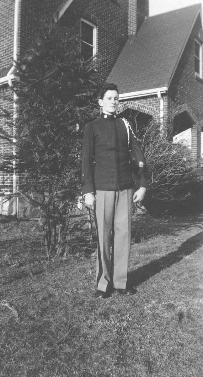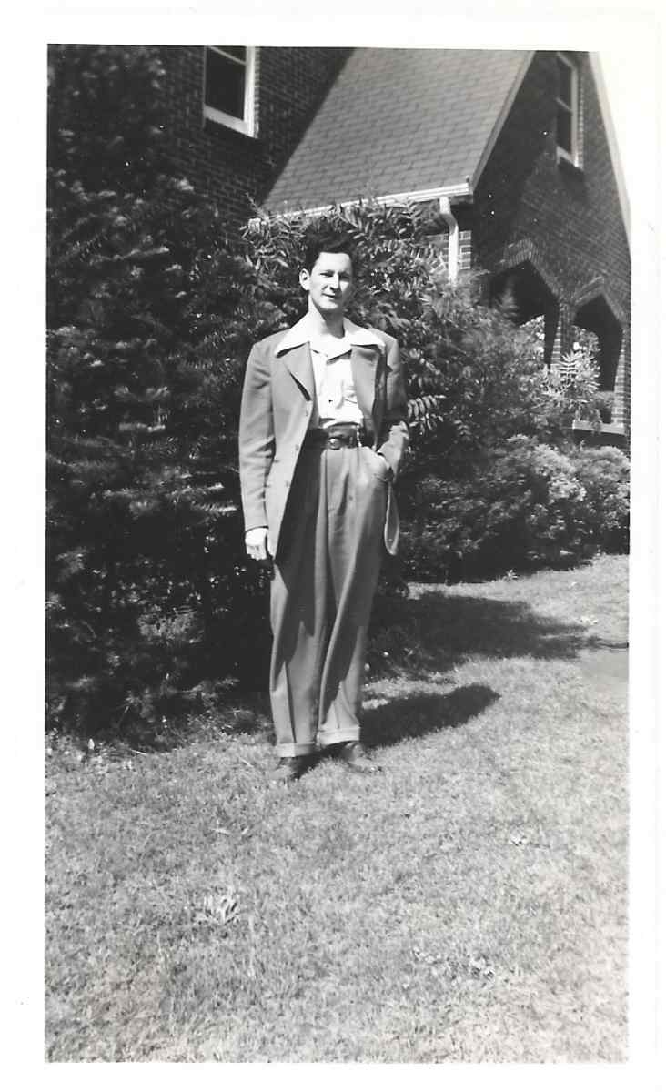 Herbert in front of a house, dressed to kill, April 23, 1942